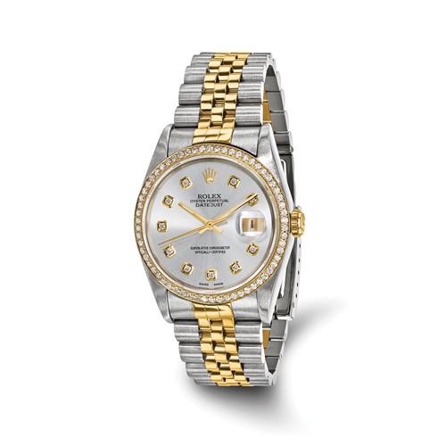 Swiss CrownT USA Pre-owned Rolex-Independently Certified Steel and 18k 36mm Jubilee Datejust Silver Diamond Dial and Bezel Watch